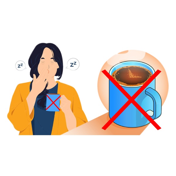 - Avoid caffeine at least 6 hours before bed