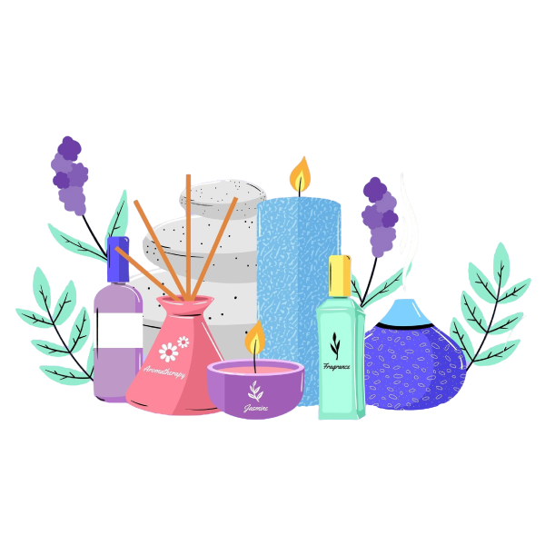 Using essential oils like lavender, rose, or chamomile directly on the skin or their aromas can have a calming effect on the mind and body and better sleep quality. Lighting candles or using essential oils like lavender could create a zen environment, space or environment that promotes a sense of calm, relaxation, and mindfulness.